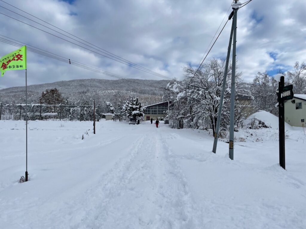 2025年11月12日、セルプ豊里の周辺では朝からたくさんの雪が降り、一面があっという間に真っ白になりました。